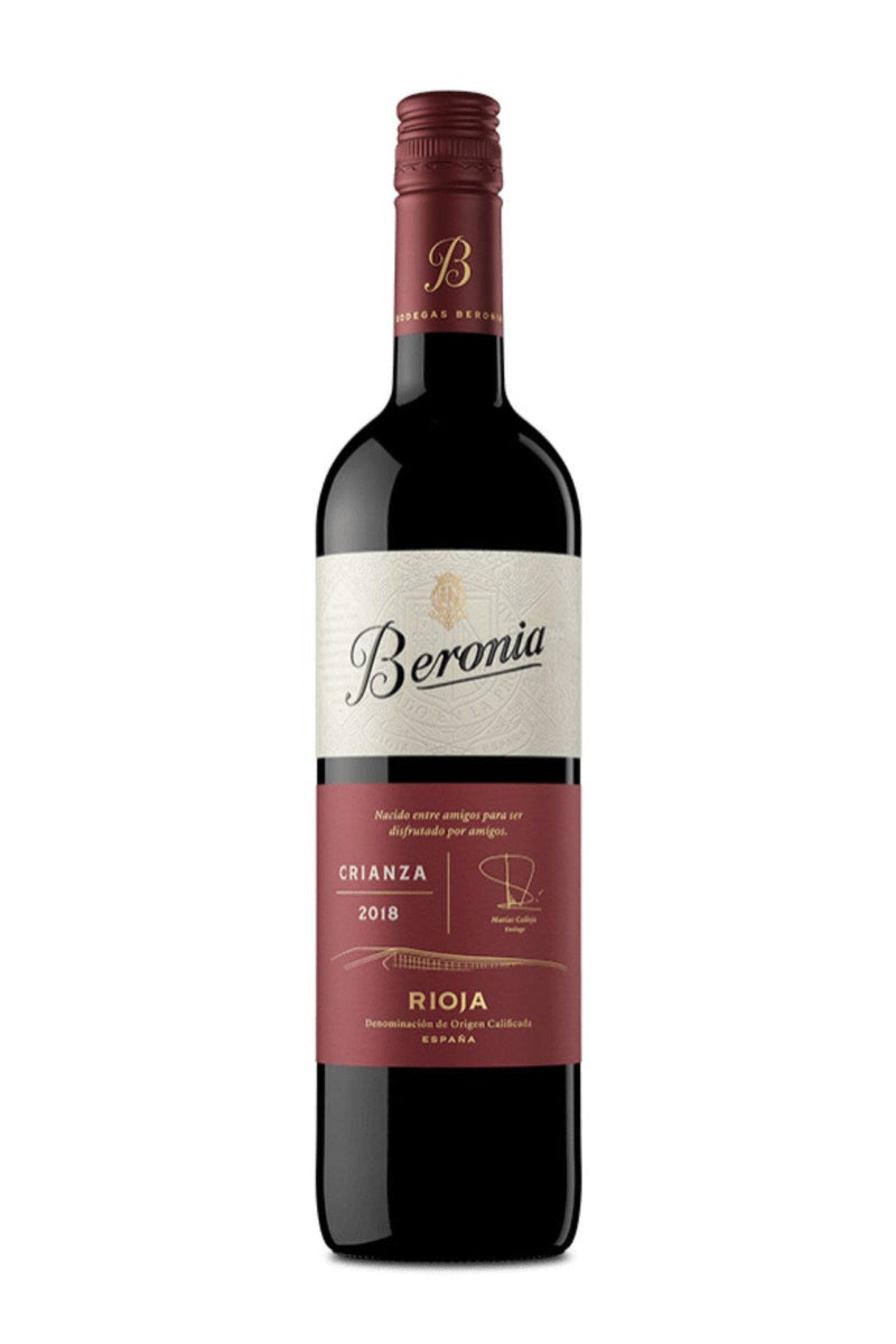 Beronia Rioja Crianza is a smooth and balanced Spanish red. It emanates inviting aromas of red berries, vanilla, and a touch of tobacco. The palate showcases flavors of cherry, plum, and a silky texture, creating a wine of elegance and versatility, ideal for pairing with grilled meats or tapas.">