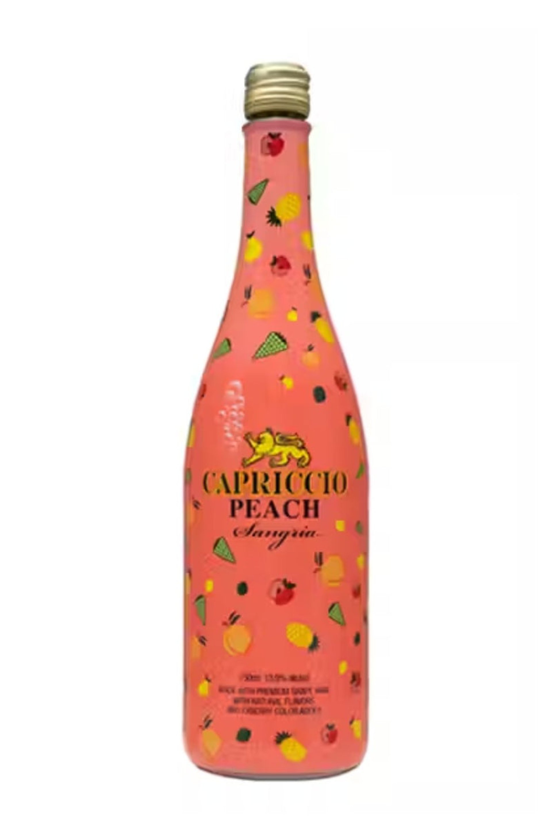 Capriccio Peach Sangria (750 ml): This sangria radiates with the lush sweetness of peach, harmoniously blended with red wine and natural essences. Ideal for tapas, light salads, or as a refreshing aperitif.">