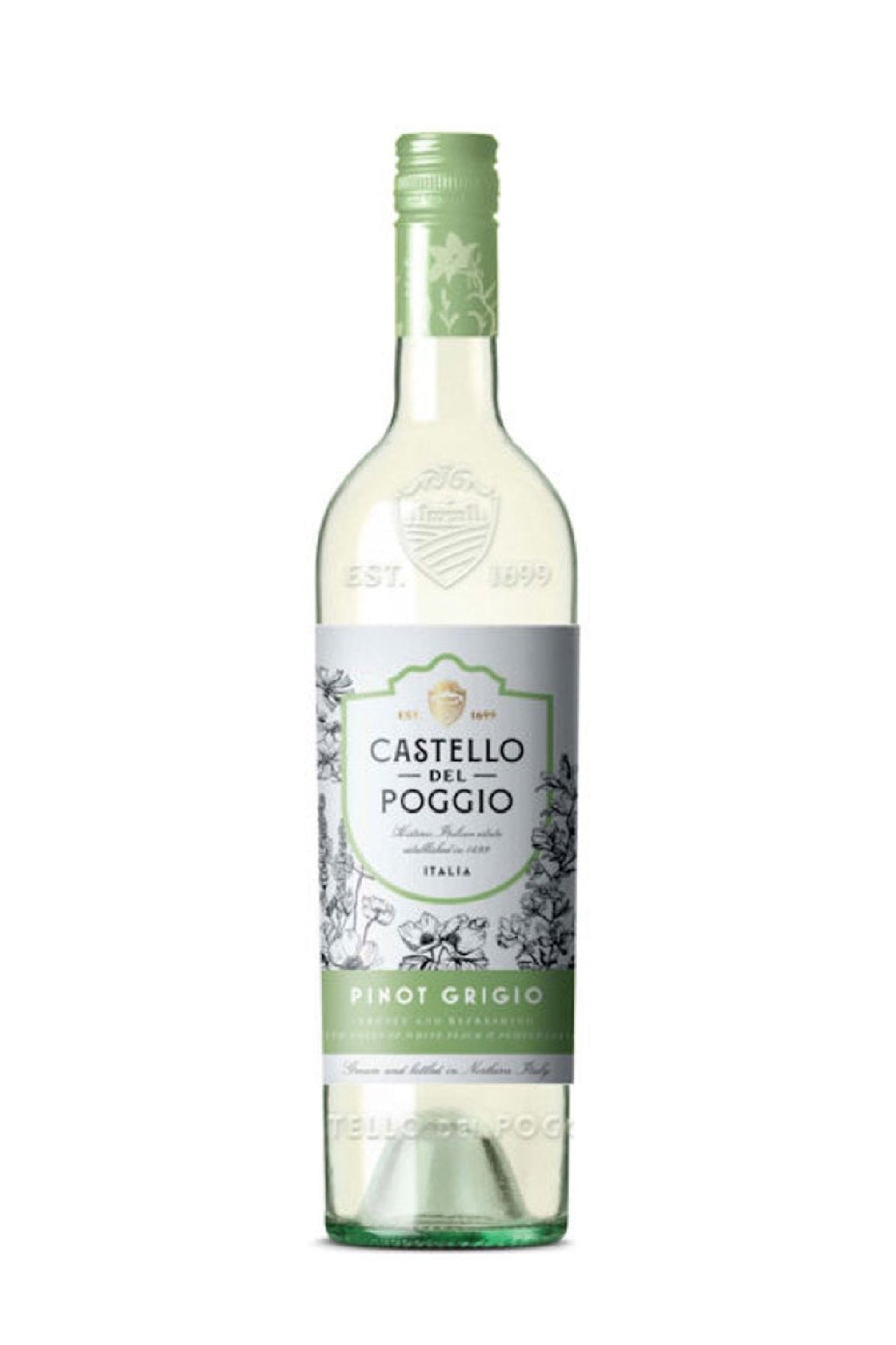 Castello Del Poggio Pinot Grigio: Castello Del Poggio Pinot Grigio is known for its bright and zesty character with flavors of green apple, citrus, and pear. The wine likely comes from the northern regions of Italy, renowned for producing crisp and refreshing Pinot Grigios.">