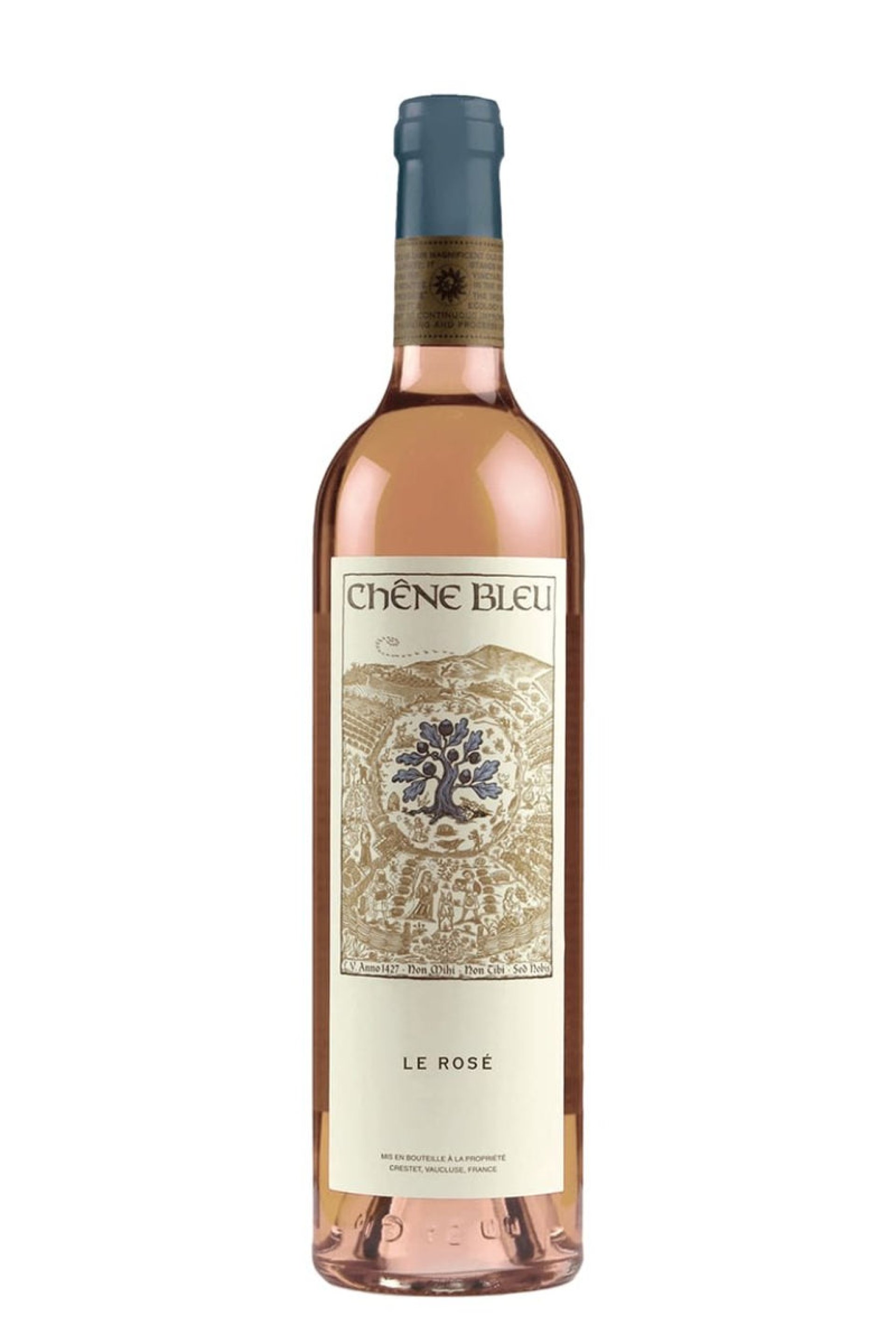 The Chene Bleu Rose is a Provence-style Rose that captures the essence of a Mediterranean summer. Delicate aromas of wild strawberries and rose petals lead to a palate bursting with red berry flavors and a refreshing minerality. This wine is bright, lively, and perfect for al fresco dining.">